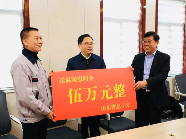 山東省總工會送溫暖走進(jìn)山東瀚業(yè)機(jī)械有限公司。新春到來之際,1月18日,山東省總工會副主席魏勇、省總工會宣傳教育部部長李更光,由淄博市人大副主任、市總工會主席卜德蘭、市總工會副主席鄒洪、淄川區(qū)委副書記王洪波、淄川區(qū)總工會主席朱淑麗、淄川區(qū)總工會副主席婁作勝、昆侖鎮(zhèn)黨委書記王林、鎮(zhèn)長李光亮等陪同送溫暖慰問山東瀚業(yè)機(jī)械有限公司全體員工,給瀚業(yè)員工送上了春節(jié)禮包。